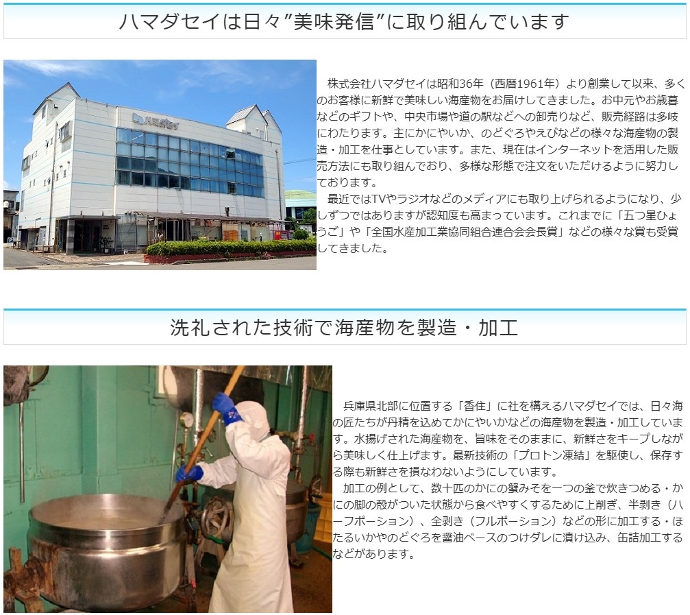| 内容量 | 蟹みそ缶詰 香住ガニ:100g、かに身缶詰:80g |
