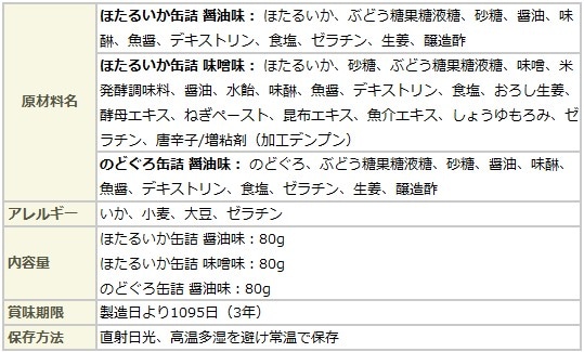醤油ベースのつけダレと魚の旨味がクセになるのどぐろ缶詰・ほたるいか缶詰が堪能できる商品です。