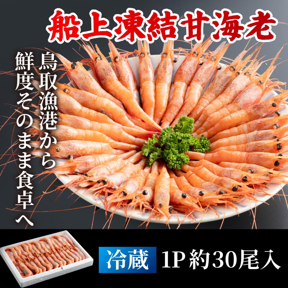山陰沖日本海で水揚げされた新鮮な甘海老を船の中で急速冷凍!舌の上でとろけそうに柔らかく甘みも強くぷりぷりの食感が楽しめます。