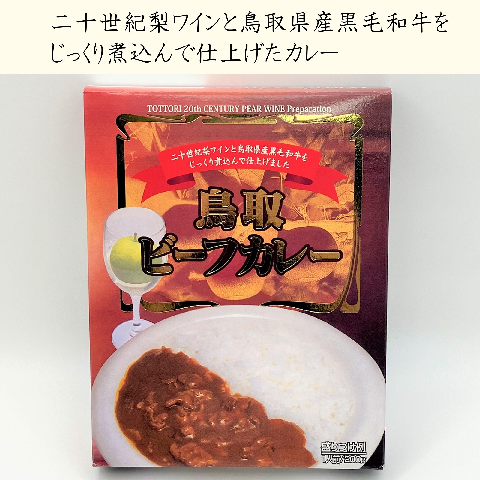 | 原材料名 | 【鳥取ビーフカレー】牛肉(鳥取県産)、小麦粉、食用油脂(豚脂)、砂糖、ぶどう糖、ウスターソース、食塩、カレー粉、チキンエキス、トマトペースト、ビーフエキス、梨ワイン、チャツネ、にんにく、しょうがペースト、香辛料、酵母エキス/調味料(ア ミノ酸等)、カラメル色素、酸味料、香辛料抽出物、香料、(一部に小麦・牛肉・大豆・鶏肉・りんごを含む) 【鳥取チキンカレー】オニオンソテー(国内製造)、鶏肉(鳥取県産)、カシューナッツ、香辛料、トマトケチャップ、食塩、バター、にんにく、おろししょうが/調味料(アミノ酸等)、(一部に乳製分・カシューナッツ・鶏肉を含む) 【鳥取砂丘らっきょう(甘酢漬け)】らっきょう、漬け原材料(砂糖、醸造酢、食塩)/酸味料 |