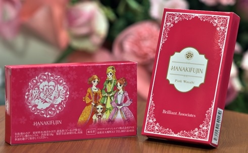 かわいいピンク色の粉わさびで、味はまさしくわさびの味です。