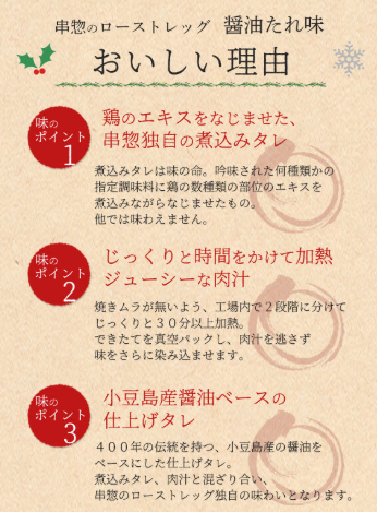 下味に鳥取産の塩?を使用した、洋風バジル味のローストレッグ。じっくりと肉汁を逃さず、焼き上げました。クリスマスにピッタリ!