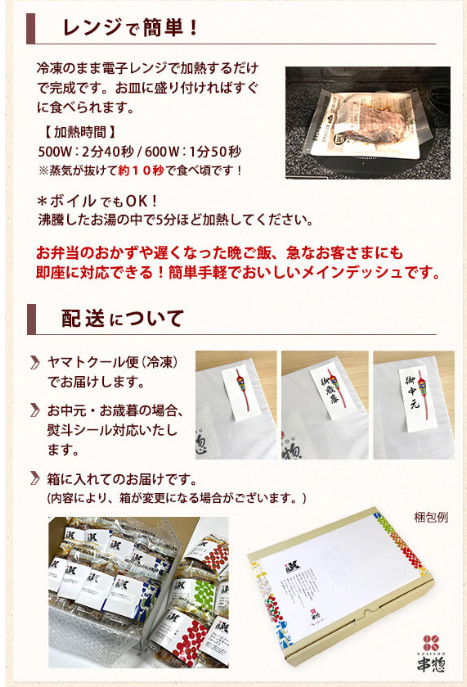 | 配送形態 | ヤマトクール便(冷凍)でお届けいたします。 |