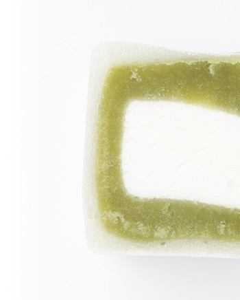 白生あん、砂糖、餅粉、生クリーム、水飴、茶、トレハロース、加工でん粉、安定剤(増粘多糖類)、香料、酵素、着色料(クロレラ末)、(原材料の一部に乳成分、大豆を含む)