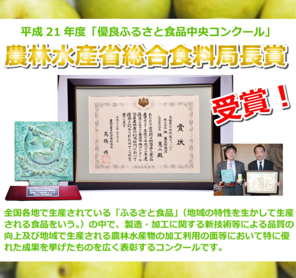 鳥取産二十世紀梨果汁をたっぷり(11%)使用しています。