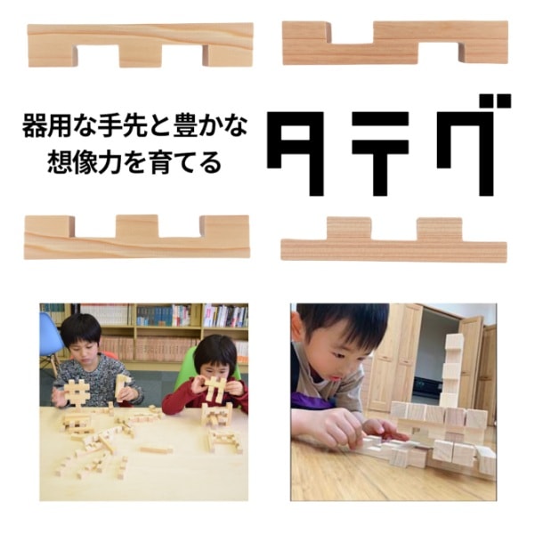 タテグは、子どもから大人まで一緒に遊べる木製玩具。