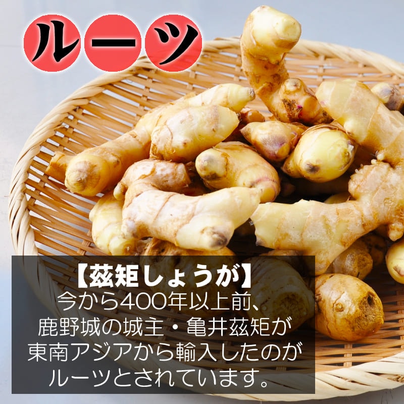 今から400年前、東南アジアより伝来した鹿野産しょうが。