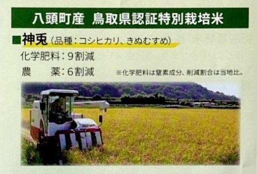八頭町産鳥取県認証特別栽培米です。