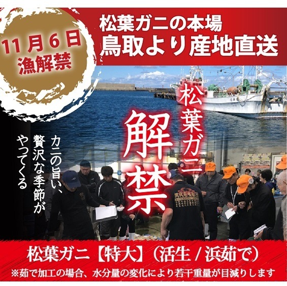 【予約特価で先行販売】松葉ガニ 特大サイズ1kg タグ付【生/茹で】【山根商店】