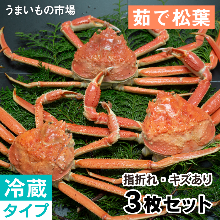 折れ傷あり 茹で松葉ガニ 3枚セット【鳥取のうまいもの市場】