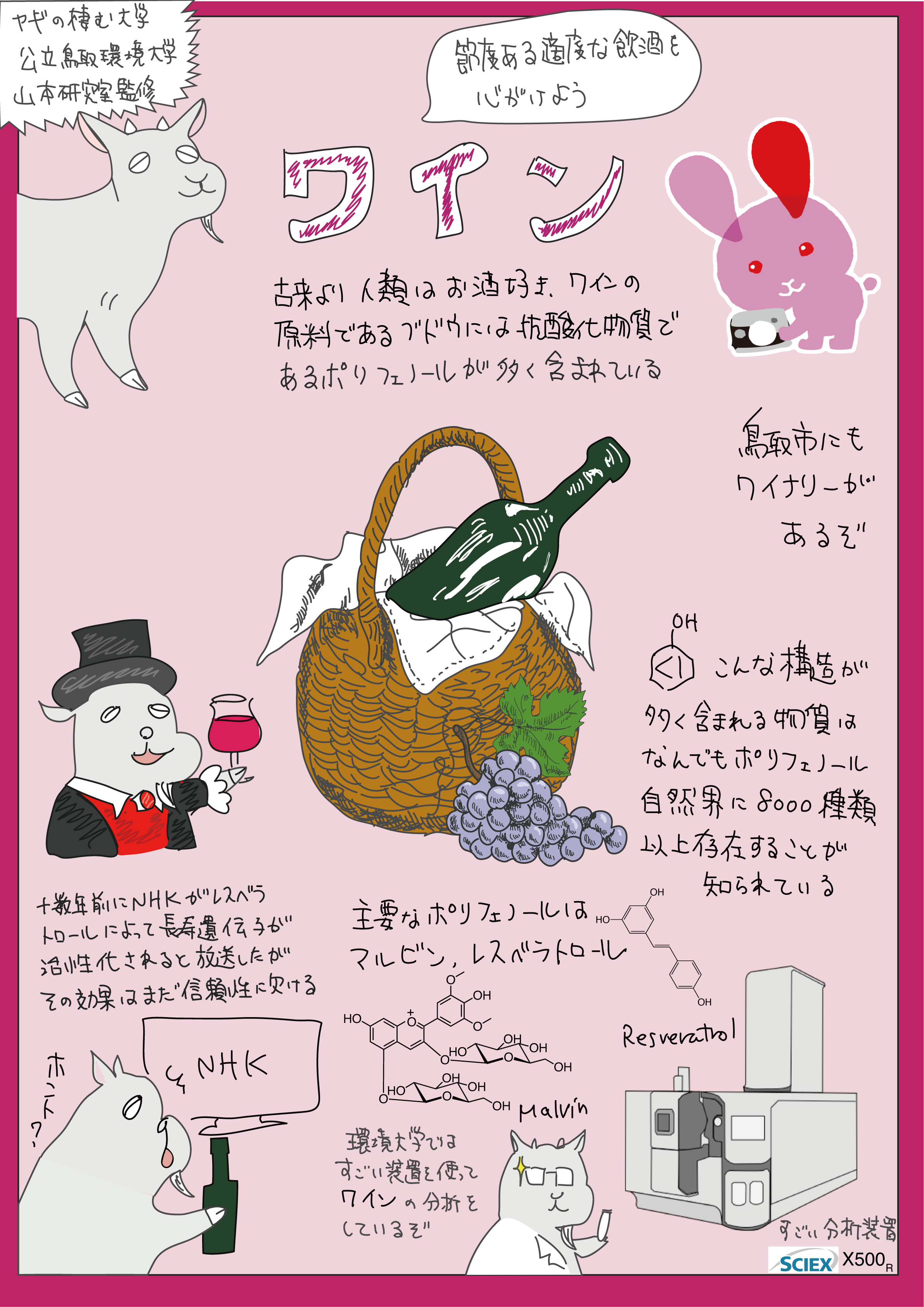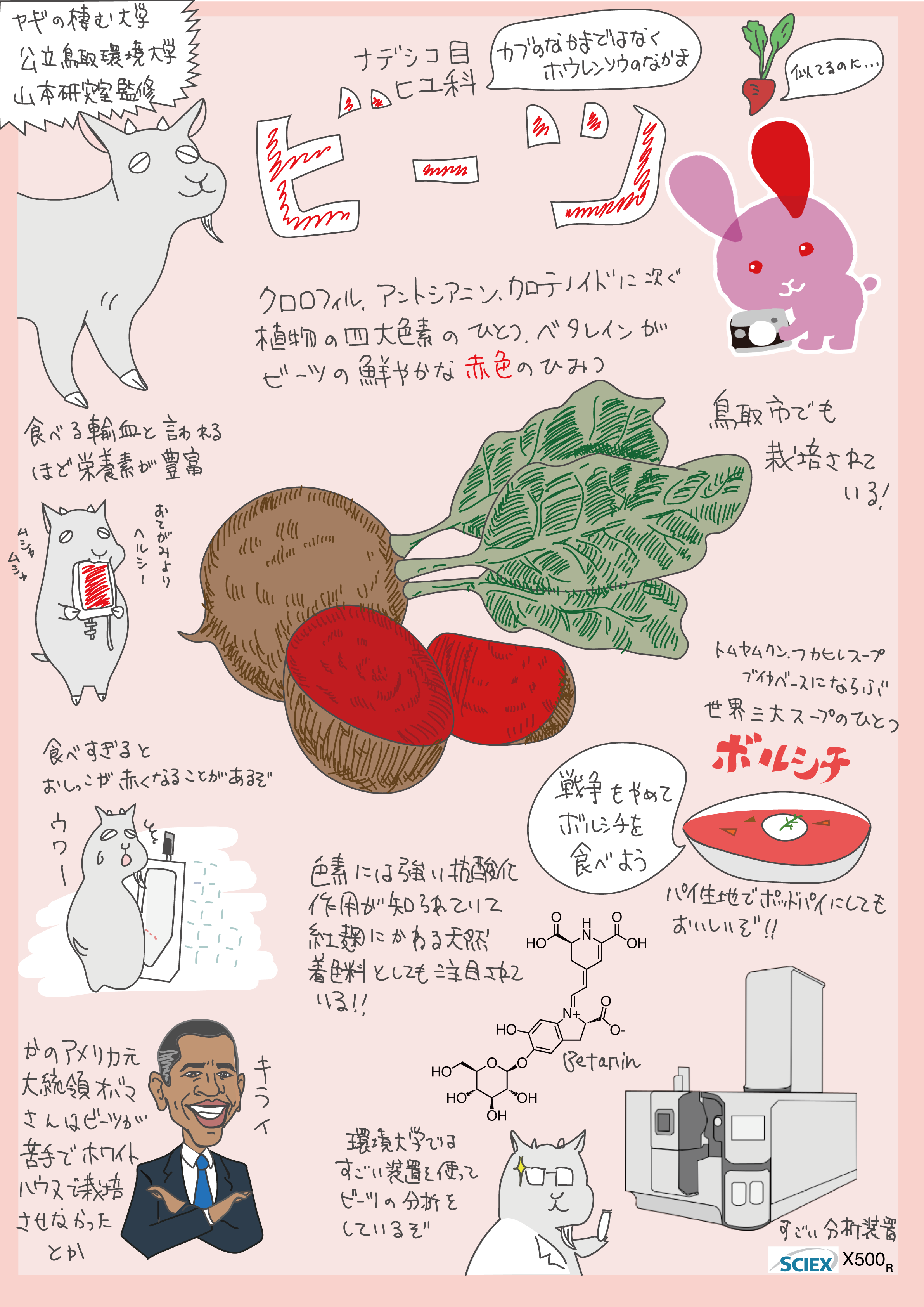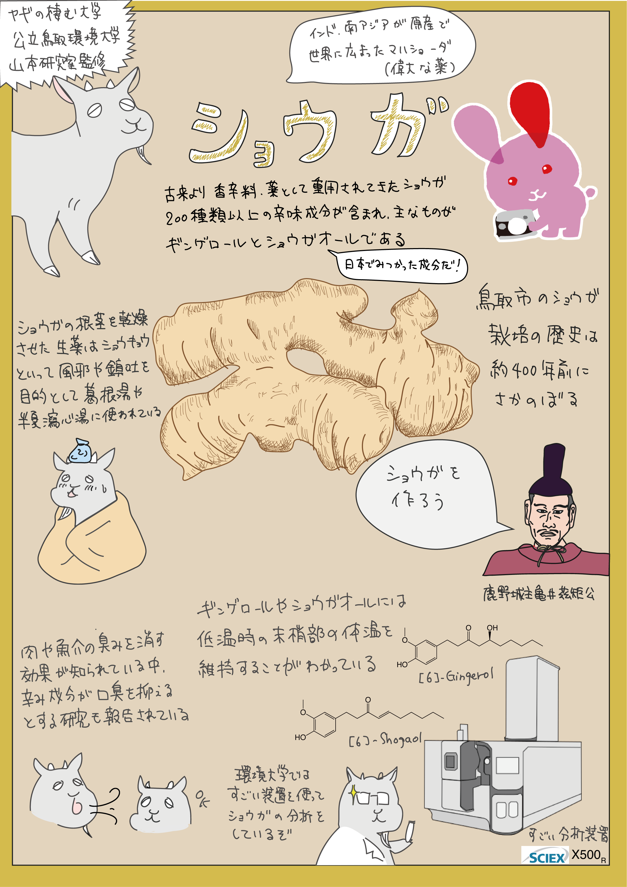 令和5~7年度は、分析化学、質量分析をご専門とされる公立鳥取環境大学山本敦史准教授へ成分分析を依頼。これまでに生姜(ジンジャーシロップ、生姜パウダー)、ワイン(兎ッ兎ワイン)、ビーツパウダーの分析に成功し、今年度は砂コーヒーを新たに分析中です。科学的データを含めた食品の特色を示し、情報発信することで、商品の魅力向上、高付加価値化を目指します。