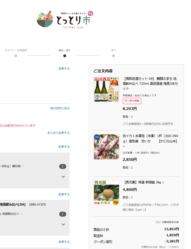 ③クーポンコードが表示され、クーポン割引適用になったことを確認し、お届け先、お支払方法を選択・入力のうえ、『注文を確定する』ボタンを押してください。